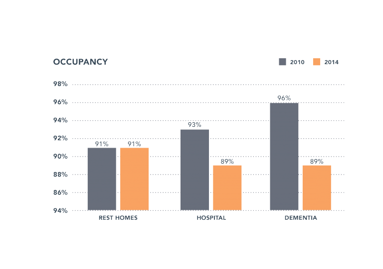 As projected in 2010, analysis of the 2014 survey data showed a short-term decline in the occupancy for aged residential care services. For dementia services, the drop relates to the increased development/adaption for dementia beds since the last survey. The research found that the majority of expansion and redevelopment was in response to increasing demand and funding for dementia services.