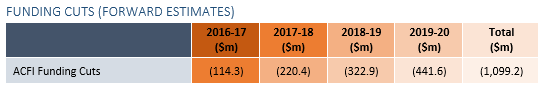 The Government hopes that the cuts will bring the ACFI funding back into the budgeted growth trend so that “funding grows at a responsible and sustainable rate”. This follows the Government’s announcement at the 2015-16 Mid-Year Economic and Fiscal Outlook (MYEFO) that the ACFI would continue to be monitored and further changes made if needed. The Government will work with the sector to examine options to separate ACFI assessment from service provision to provide greater certainty of funding.
