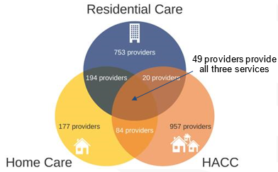 Whilst providers have traditionally focused on a single stream of care, largely as a result of the siloed funding models, we are now seeing providers examine new markets that will increase service delivery and efficiencies. Out of 2,234 providers in Australia, there is only 49 providers who have services across residential care, home care and community care.